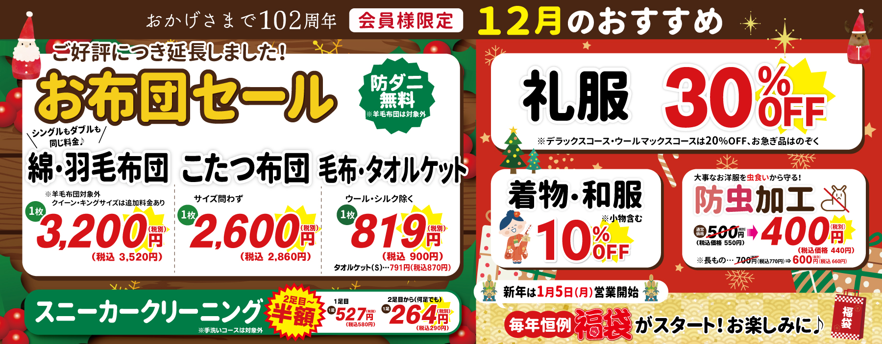 お知らせ 2025.11.12お得【会員様限定】アルタ店限定セール開催のお知らせ2025.11.12お得【会員様限定】セリオ店限定セール開催のお知らせ2025.10.31お得【会員様限定】11月のお得情報♪お布団セール☆チャイルドシート・ベビーカー10%OFF!2025.10.30Info11月の店休日カレンダー 会員割引サービス 明治屋クリーニングではお得な会員割引をご用意しております! カード会員入会金は200円(税込)。年会費は無料。 会員の方はカードご提示でいつでも10%OFF✨初回登録特典は20%OFF✨ その他、特典盛りだくさん!是非ご入会ください ↓↓詳しくはこちら↓↓ 明治屋のお得な割引 明治屋のクリーニング商品 ダウン 布団 キャンプ用品 学生服 ダウン 布団 キャンプ用品 学生服 佐賀の皆様に愛され創業102年事業・会社概要 一着を大切にする。明治屋クリーニングのこだわり Instagram ⭐アルタ店限定セールのお知らせ⭐ さらに読み込む Instagram でフォロー Facebook 明治屋クリーニング LINE 明治屋クリーニングLINEアカウント クリーニングのお得な情報やクーポンも配信しております♪ぜひお友だち追加お願いします! Ⅹ(旧 Twitter) セール情報配信中!